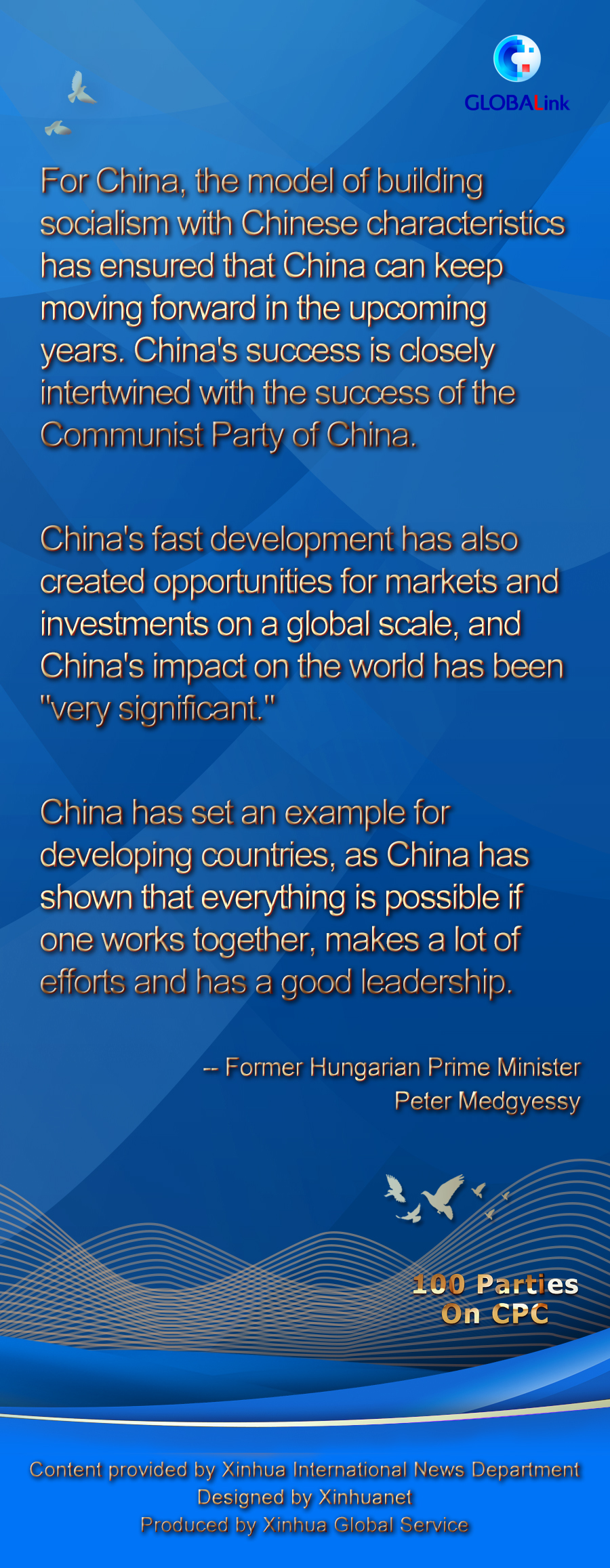 As this year marks the 100th anniversary of the founding of the CPC, Medgyessy explained the main reasons behind the party's long-term success.