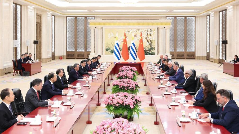 Following the strategic guidance of the two heads of state, China stands ready to work with Uruguay to provide firm mutual support on issues concerning each other's core interests, actively share opportunities on the path of common development, enhance practical and mutually beneficial cooperation, and deliver greater benefits to the people of the two countries, he said.